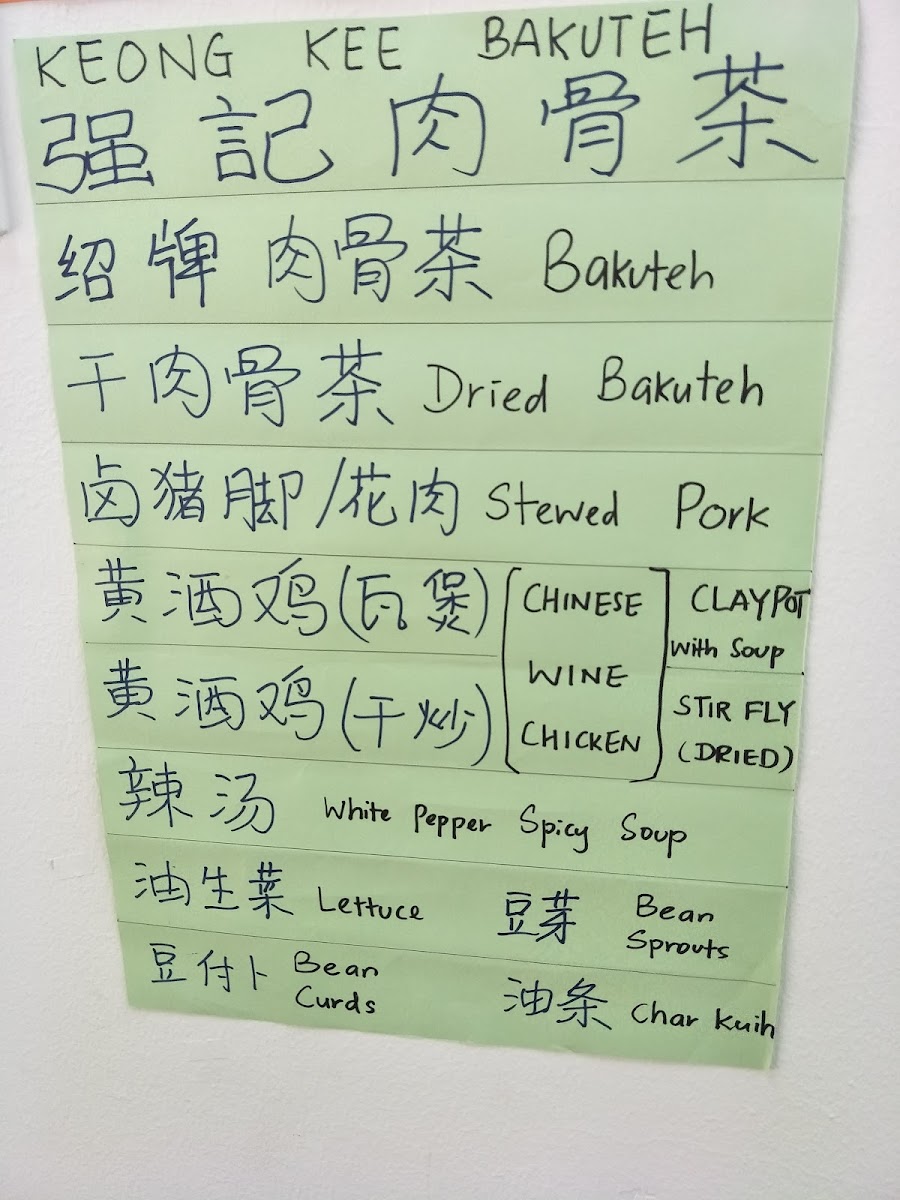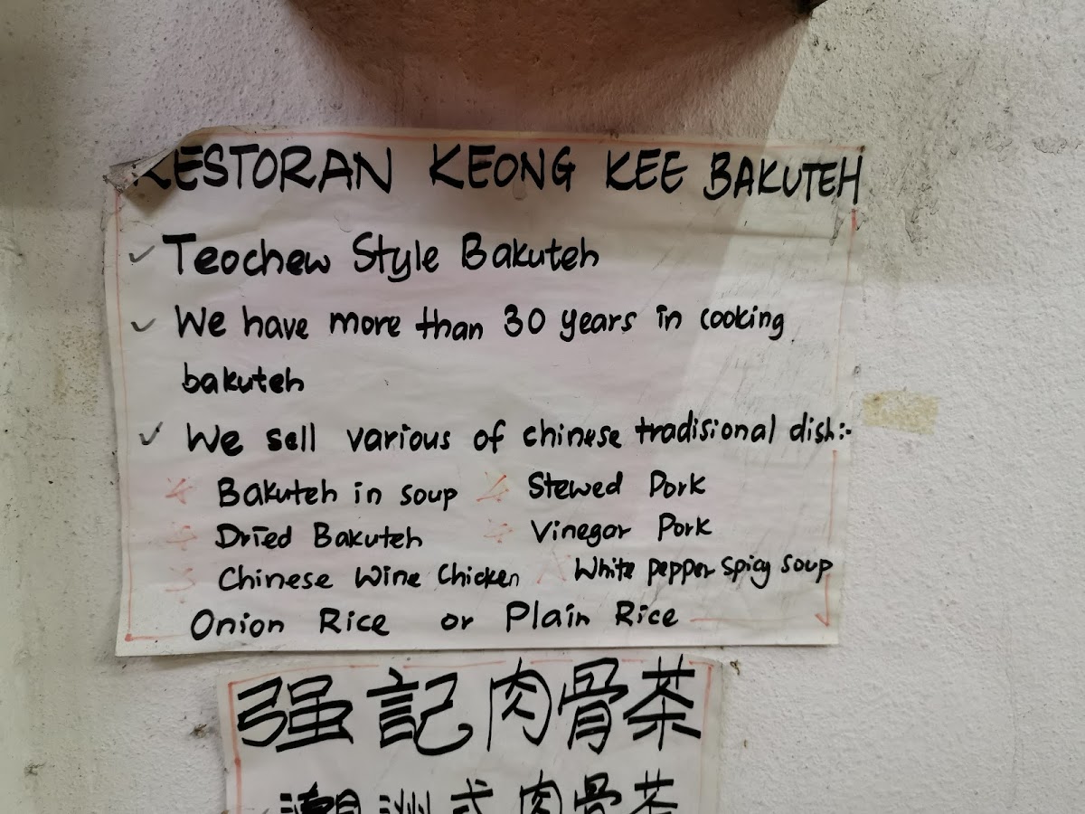 Restaurant Keong Kee BaKuTeh Glenmarie Menu